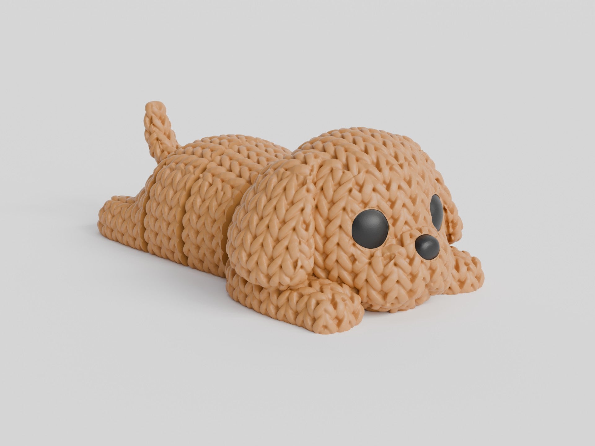 3d printed Dog articulated fidget keyring designed to capture the look of knitted yarn.
