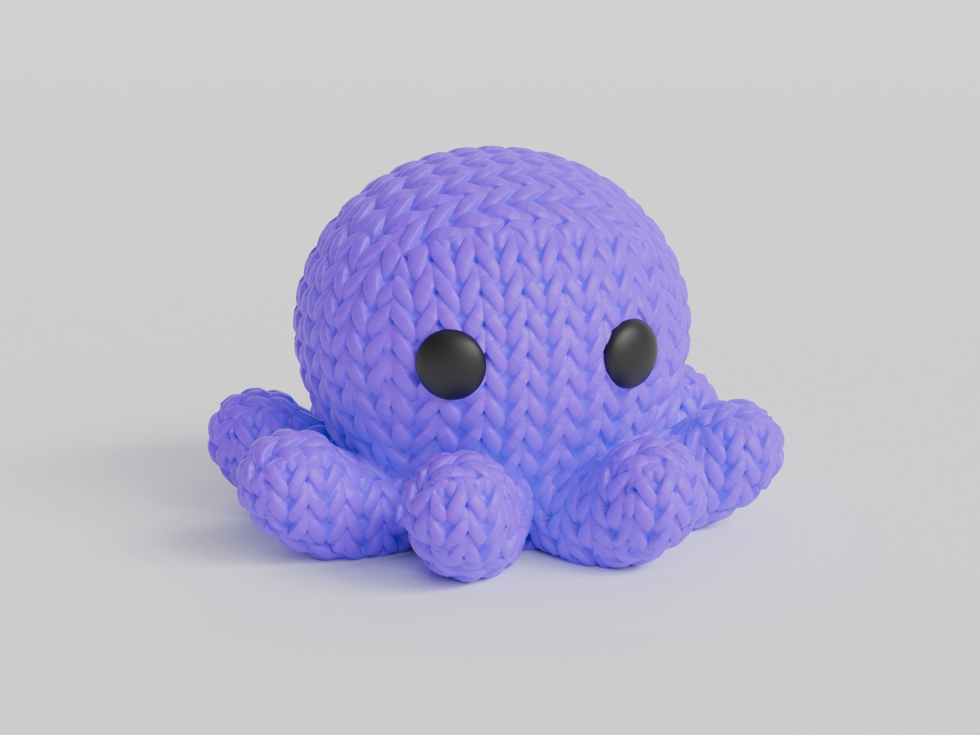Ollie the Octopus, a 3d printed figurine designed to capture the look of knitted yarn.
