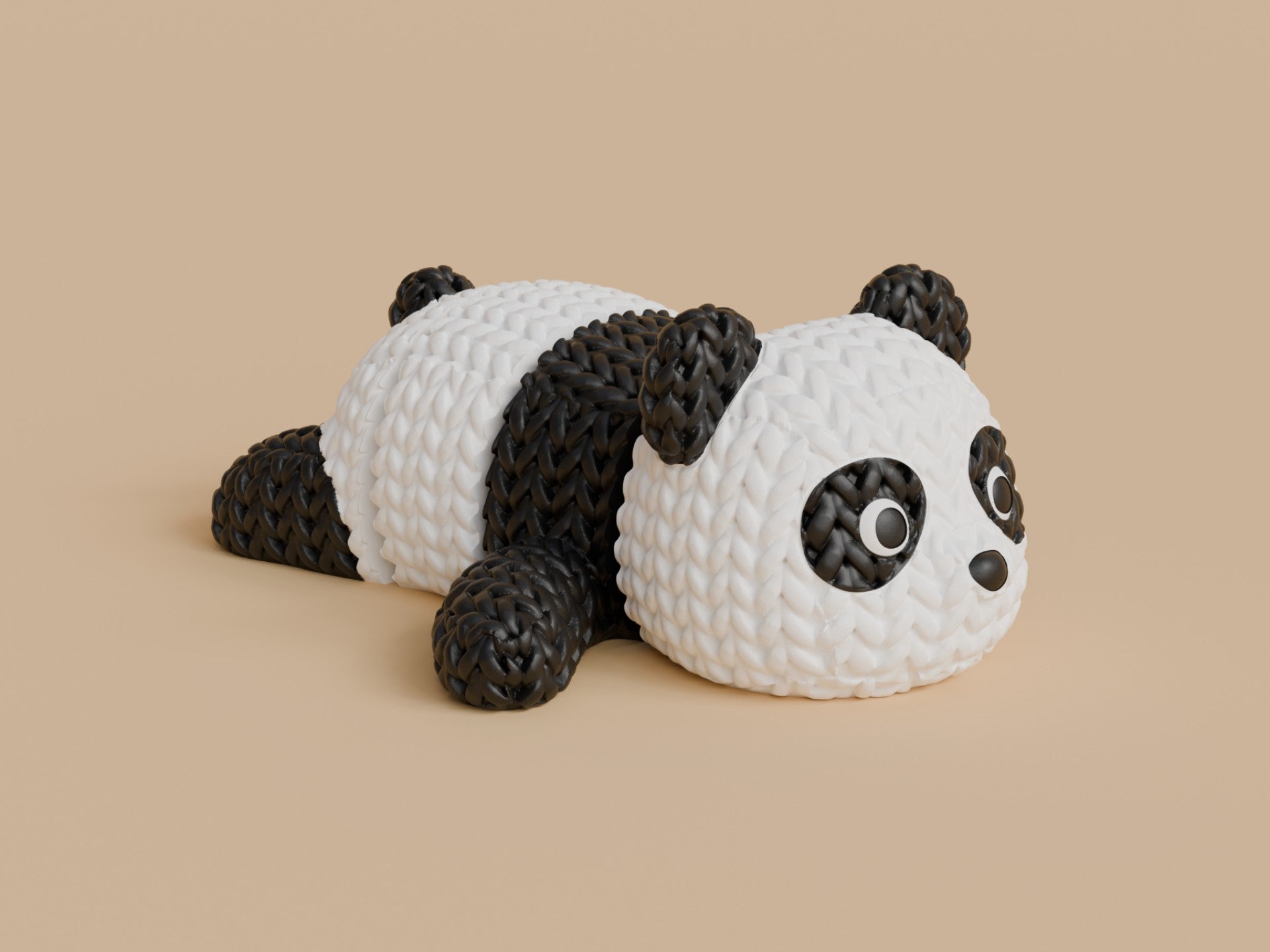 3d printed Panda articulated fidget keyring designed to capture the look of knitted yarn.