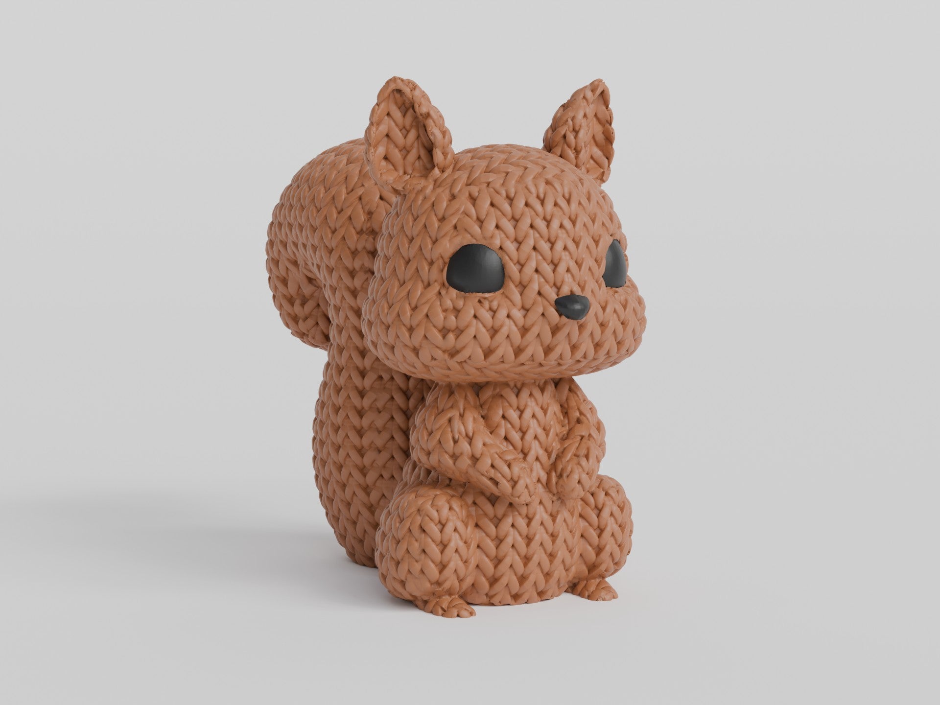 Sadie the Squirrel, a 3d printed figurine designed to capture the look of knitted yarn.
